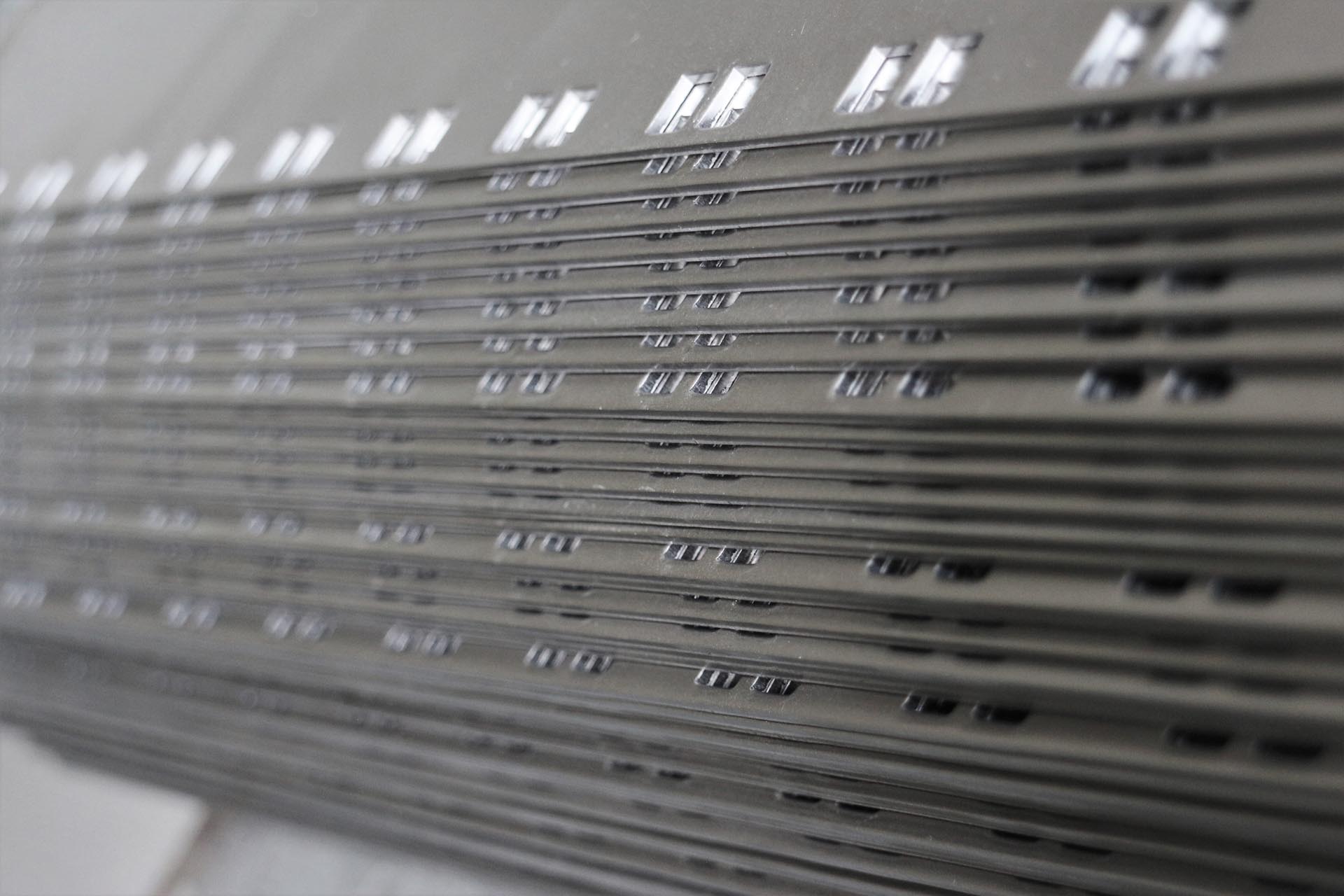 Je nach aktuellem Auftrag bedient sich das HK-Team zu diesem Zweck fünf Pressen, die einen Druck von 30 bis 100 Tonnen erzeugen können. Im Detail betrachtet, steht unseren kompetenten Mitarbeitern in Sachen Stanzen neben dem universell einsatzbaren Stanzbügelsystem unter anderem auch aufwändiges Folgeschnittwerkzeug zur Verfügung.